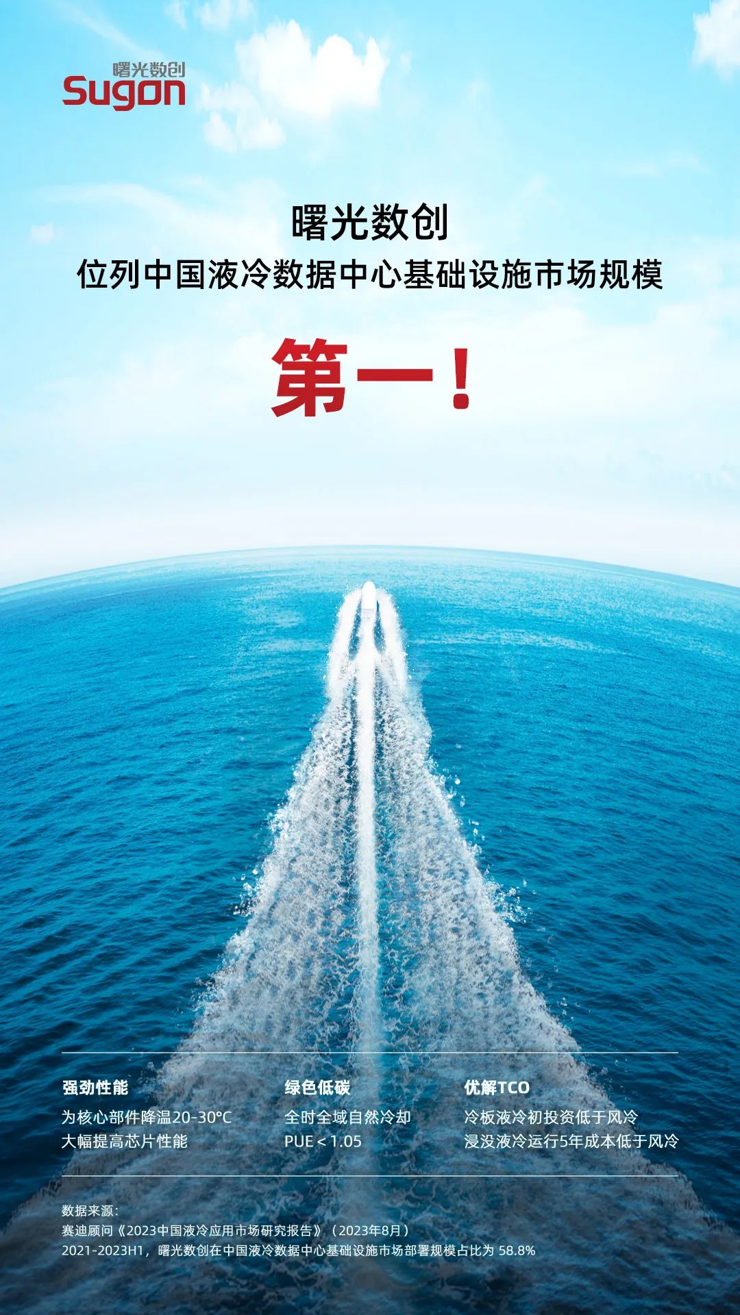 赛迪顾问《2023中国液冷应用市场研究报告》显示,2021年至2023年H1,曙光数创以平均58.8%的市场份额,位列中国液冷数据中心基础设施市场规模第一,多年稳居行业头名。