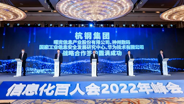11月7日,在信息化百人会2022年峰会主论坛上,杭州钢铁集团(下称“杭钢集团”)与中科曙光签署战略合作协议。双方将在技术创新、产业布局、人才培养等多环节紧密合作,夯实云计算、大数据、人工智能等新兴技术落地应用,携手加速以数字化技术赋能钢铁产业变革进程。