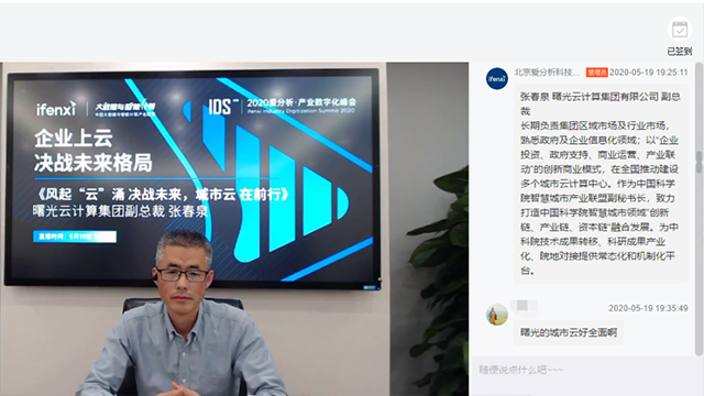 5月19日,曙光云计算集团有限公司副总裁张春泉在做客由爱分析联合中国大数据与智能计算产业联盟共同举办的2020爱分析·产业数字化峰会上表示。
