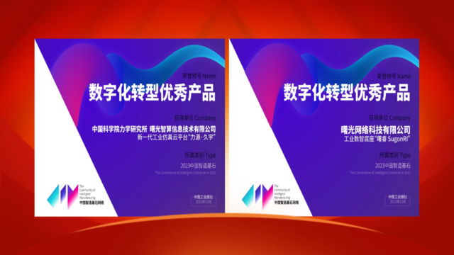 1月23日,《中国工业报》公布了2023 年中国智造基石获奖名单。中科曙光旗下公司曙光智算、曙光网络,凭借与中国科学院力学研究所共同推出的新一代工业仿真云平台“力源·久宇”、及工业数智底座“曙睿 SugonRI”,入选中国智造基石名录,分别获得数字化转型优秀产品奖。