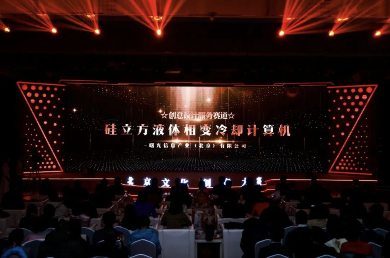 1月11日,第七届北京市文化创意大赛颁奖典礼圆满落幕。大赛参赛项目59831个,688个项目进入总决赛,经过终评路演答辩及专家现场评审,中科曙光“硅立方液体相变冷却计算机”(简称计算机)荣获大赛创意设计服务赛道一等奖,并在六个赛道中优秀项目中脱颖而出,取得总决赛一等奖!