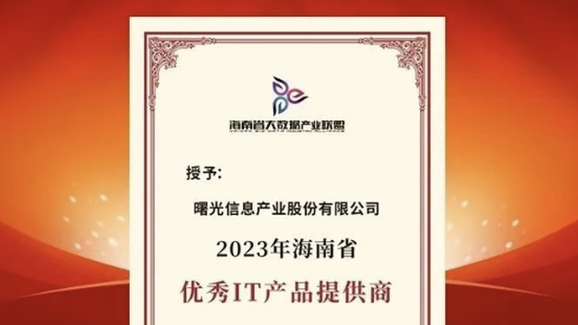 曙光被授予“2023年海南省优秀IT产品提供商”!