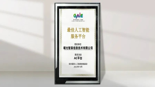 近日,以“AI融合创新·推动高质量发展”为主题的2023深圳国际人工智能展在深圳福田区落幕。会上同期举办“2023 GAIE大奖颁奖盛典”,凭借在人工智能领域的突破创新与深入实践,曙光智算AC平台获评“最佳人工智能服务平台”奖项。