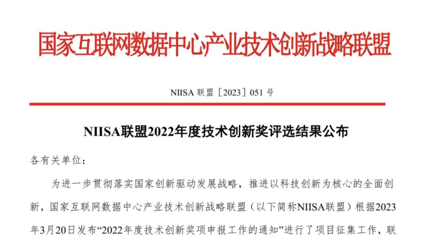 曙光数创荣获NIISA联盟2022年度技术创新特等奖!